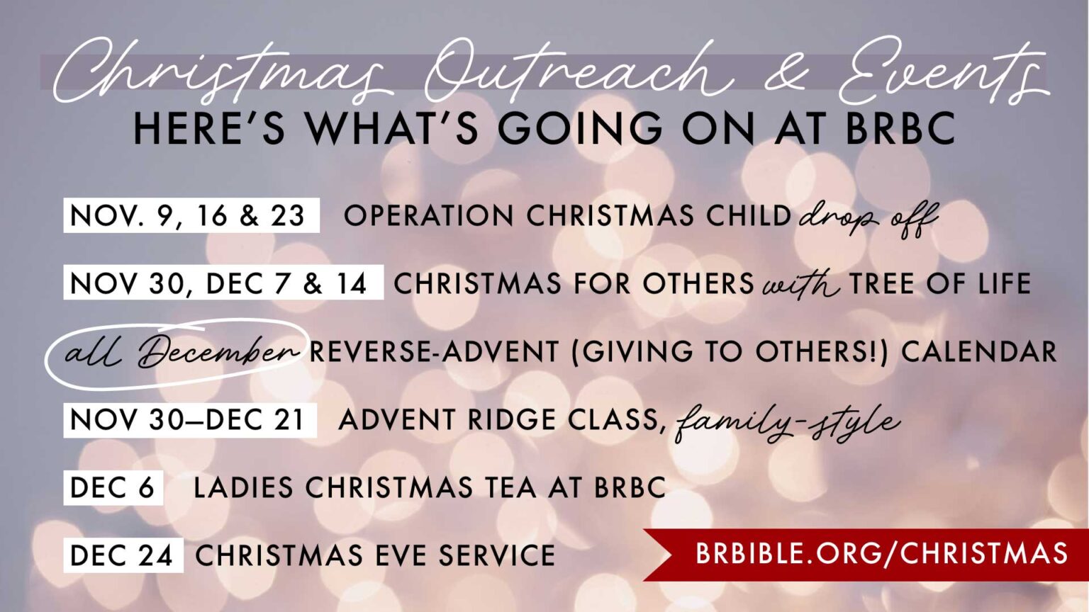 Join us for the Advent season leading up to Christmas at BRBC! Here’s what’s happening: