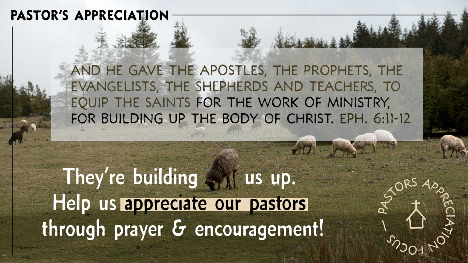Our pastors carry a unique calling. This is our opportunity to recognize their ministry that is often unseen. Take some time as a family to think of ways to show them our appreciation and commit to lifting them up in prayer!